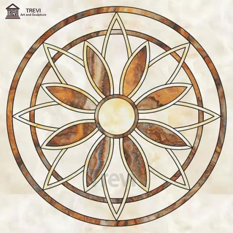 This marble waterjet mosaic has a diameter of 2 meters. It can also be made into other specifications and sizes. We can customize the style and size of the marble waterjet mosaic you like.
