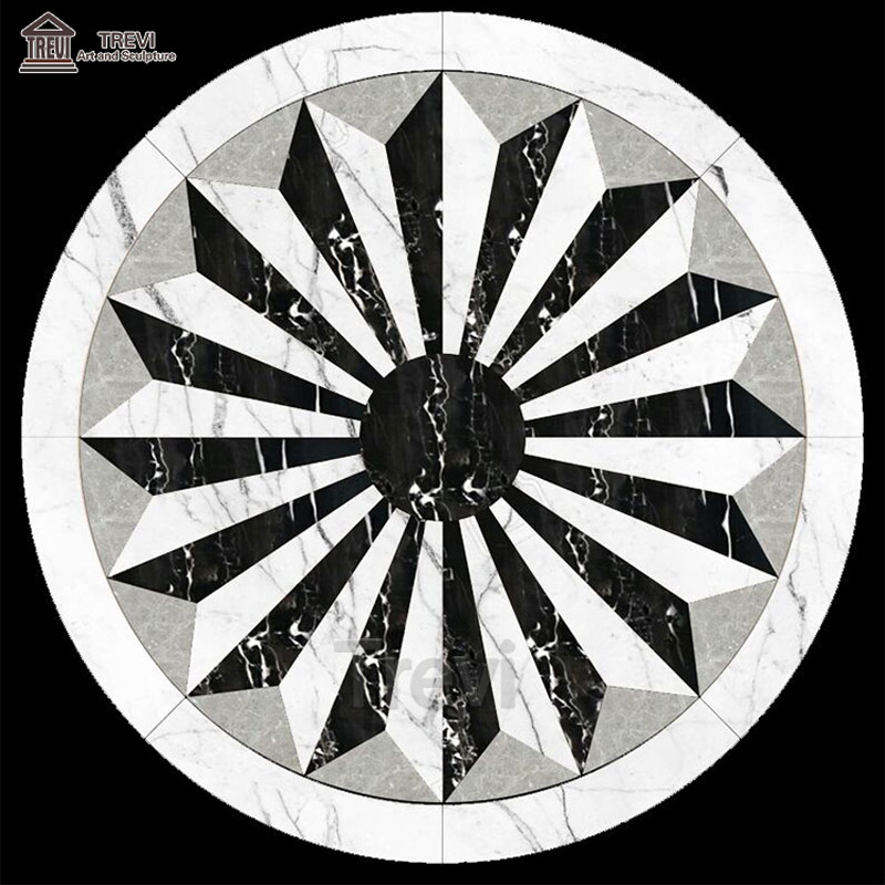 This marble waterjet mosaic has a diameter of 2 meters. It can also be made into other specifications and sizes. We can customize the style and size of the marble waterjet mosaic you like.