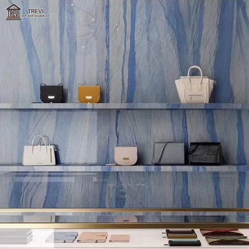 In 2020, a friend of ours chose Geyunlantian marble as the background wall for the store display. We typeset according to the texture of Geyunlantian marble, and the final result is very good, natural, beautiful and generous. Our friend told us that he made a very correct choice, which will make his shop look very fashionable. He likes this style very much, which is in line with the positioning of his store.